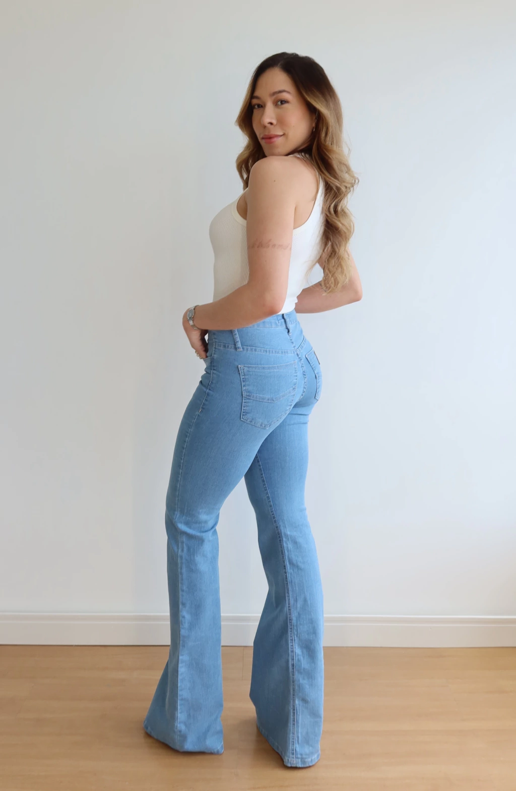 A Calça Flare Ana é a definição de versatilidade: um jeans claro, básico e atemporal, perfeito para compor desde produções casuais até looks mais sofisticados.