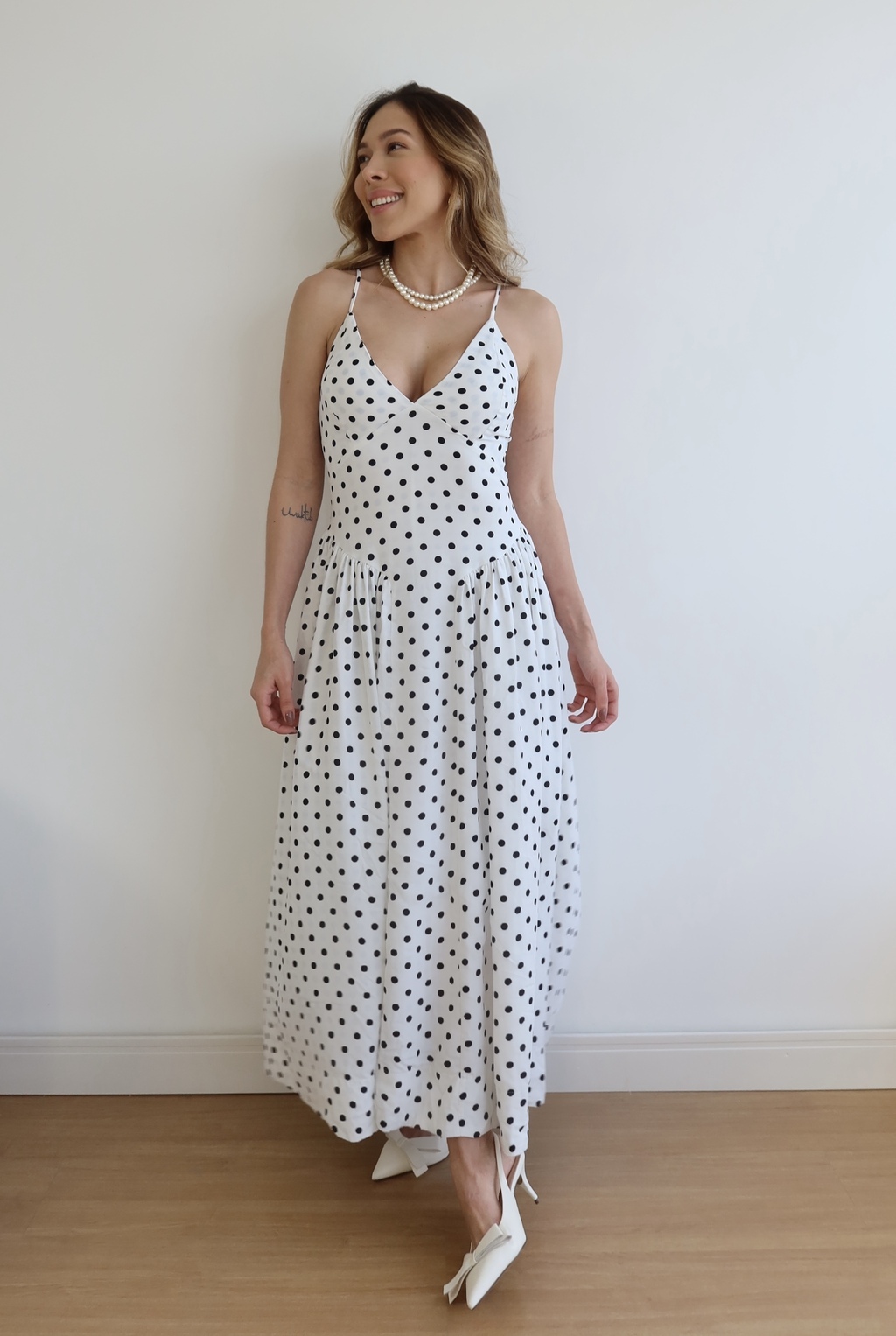 Descubra o charme atemporal do Vestido Helena, uma peça que exala feminilidade com um toque de modernidade. Confeccionado em tecido de alta qualidade, ele traz a clássica estampa de poá, perfeita para criar produções elegantes e românticas.